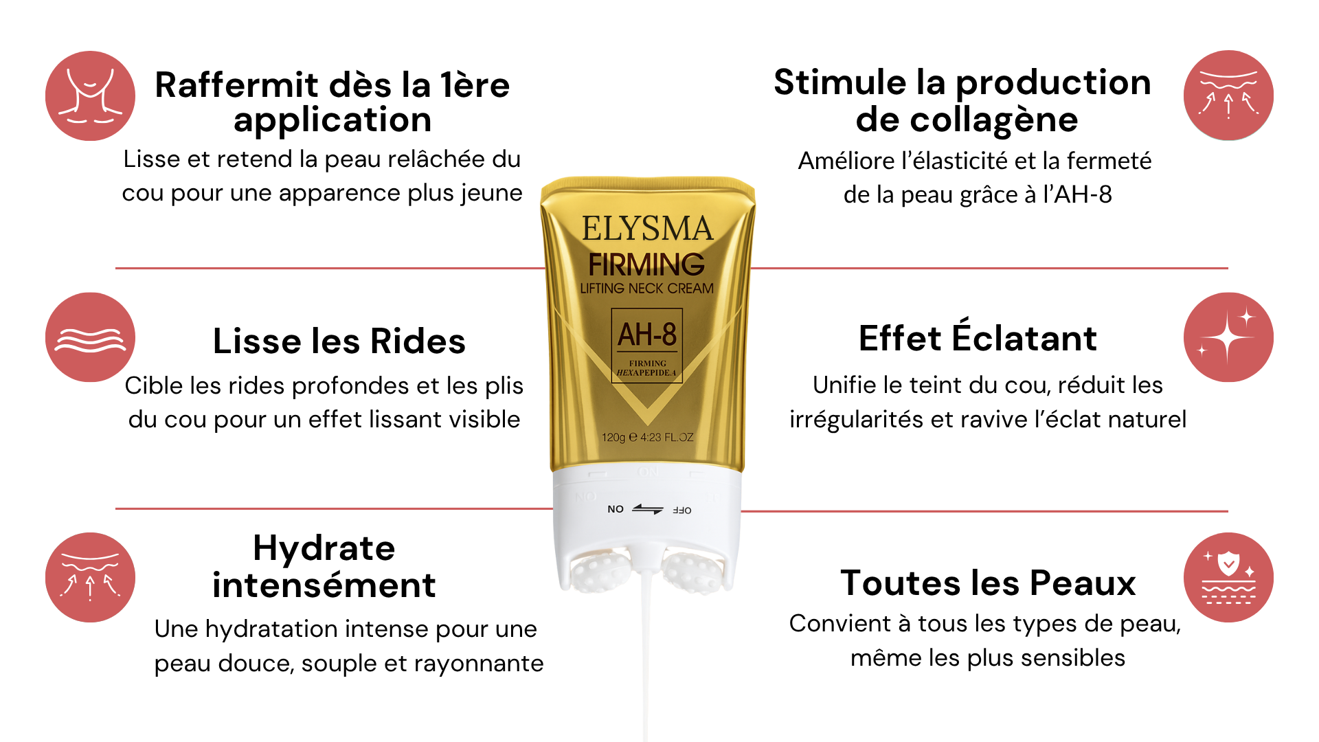La Crème Cou Liftante Elysma a été développée pour tous les types de peau, à tout âge, que vous soyez femme ou homme, et quelle que soit votre routine actuelle.